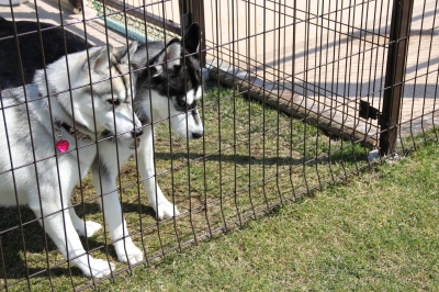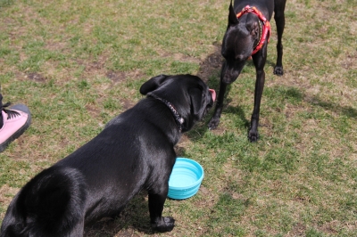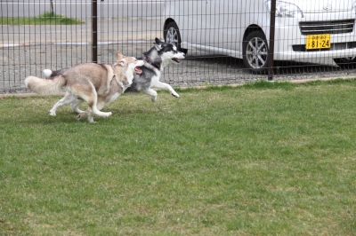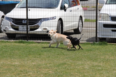 リンチャン今日はフリスビーをかじる、草を食べるで、ママ、ダメダメの連発