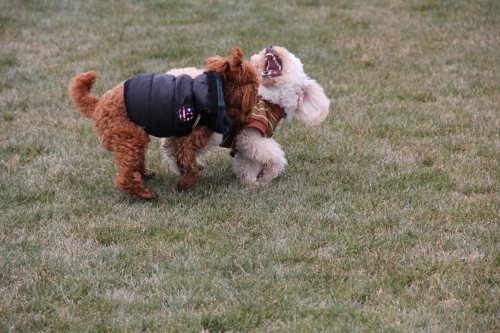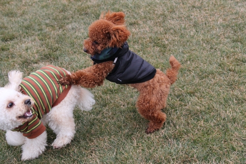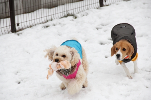 今朝も冷えた~ しかし、みんな暖かそうな服を着て遊びに来てくれたよ