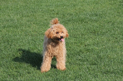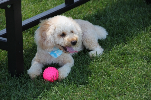 さて、夕方、少し涼しくなってから、プードルのビビちゃんとモック君がランデビュー