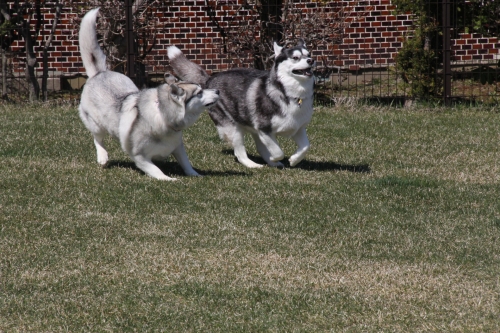 日差しもなんのその、仲良く駆けっこ