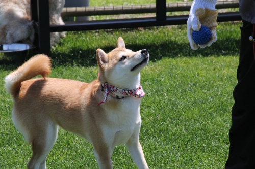 今日はフリスビーの他にボールでも遊んだぴのこちゃん。今度はお姉ちゃんと遊びに来てね~