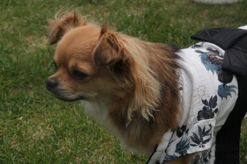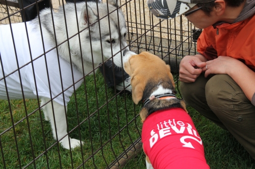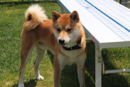 次はポコちゃん……あれ、ポコちゃんは暑さとたくさん走った疲れでお父さんの影で一休み