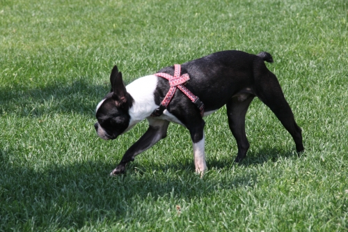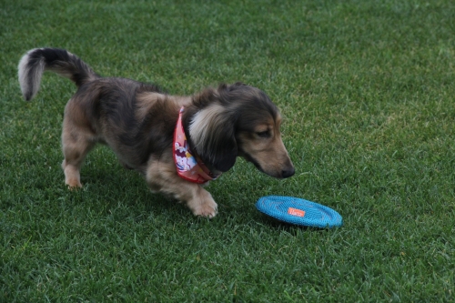 ピンクのフリスビーは、初めは大きすぎて持てなかったのですが、昨日持ちやすい咥え方を見つけたので、今日はらくらく持ってます