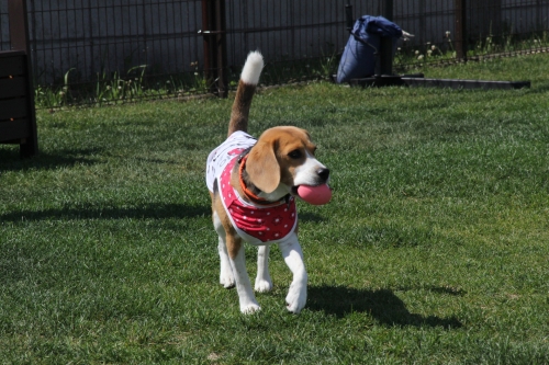 ビビちゃんもお気に入りのボールをお母さんに投げてもらうと、嬉しそうに取りに行きます