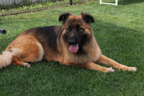 ロンちゃんは今日はいつものボーリングのピンではなく、黄色と青のボール…だったものを満足そうにカミカミ…