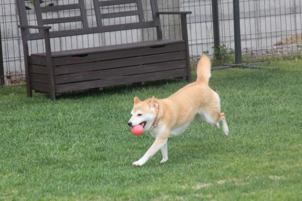 ボール遊びが楽しくて、お尻を高く上げて尻尾をフリフリ