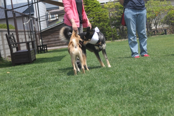 ラン内を2頭で何度も追いかけっこをして遊んだ後には…