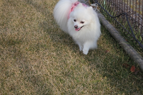 真っ白なふわふわの毛をなびかせ楽しそうなゆずきちゃんですが