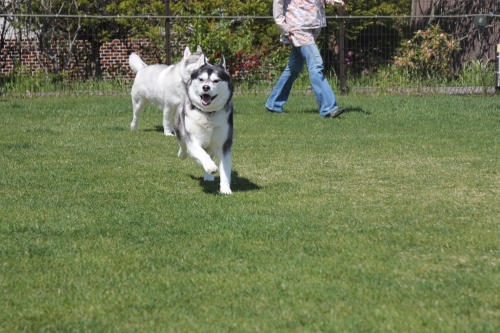 いつも仲良く元気なハスキーのティアラちゃんとエスポワールちゃん